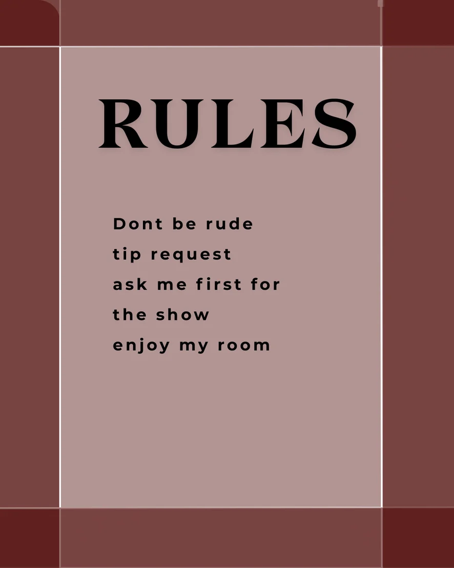 Tarian Erotik, Menunjukkan Lurah Faraj, Penilaian Zakar, Orgasma, Yoga, Intai Bawah Skirt, Tampar Punggung, Menduakan, Main jari, Sembang Lucah, Tarian Bogel, Fetisy Kaki, Penghinaan, Arahan Lancap, Kulum, Melancap, Melancap dengan kaki, Tumit tinggi, Dildo atau Penggetar, Hisap Sedalam Mungkin, Main Peranan, Alat Permainan Dubur, Alat Permainan Seks, Seks Tetek, Pancut, Separuh Bogel